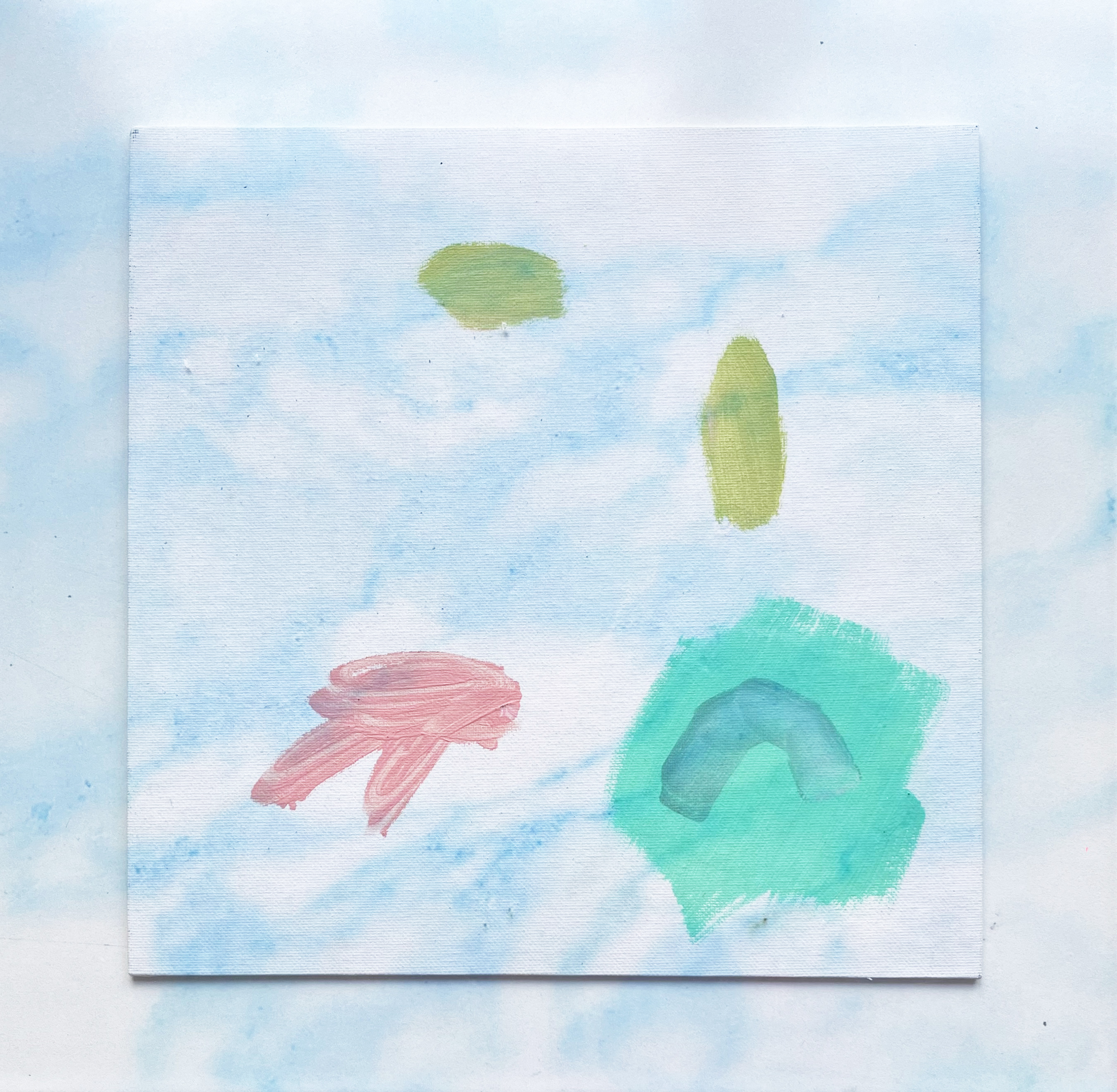 (2023)Parce que l’eau est omniprésente dans mon travail, engageant un dialogue avec l’environnement immédiat – la roche, la montagne, le lac – j’ai peint la matière et la lumière avec l’énergie du geste dansé, pour libérer le poids des motifs grâce à la charge de l’eau. Ces peintures se présentent en miroir des Inaperçus Bleu poudre — petite brume légère, presqu’une haleine — et font écho à cette nouvelle série Nuages dont les veines marbrées se transforment en matière céleste.